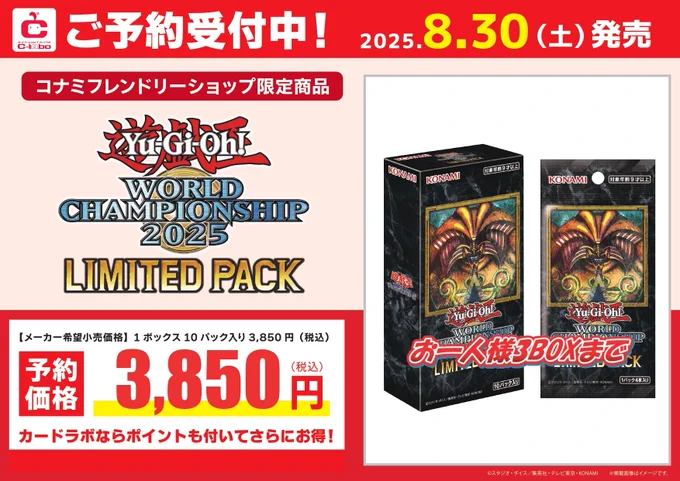 【遊戯王OCG 予約情報】 8月30日発売 『LIMITED PACK WORLD CHAMPIONSHIP 2025』 ※こちらお一人様3BOXまでとなります 予約開始致しました 注意事項をご確認の上ご来店くださいませ