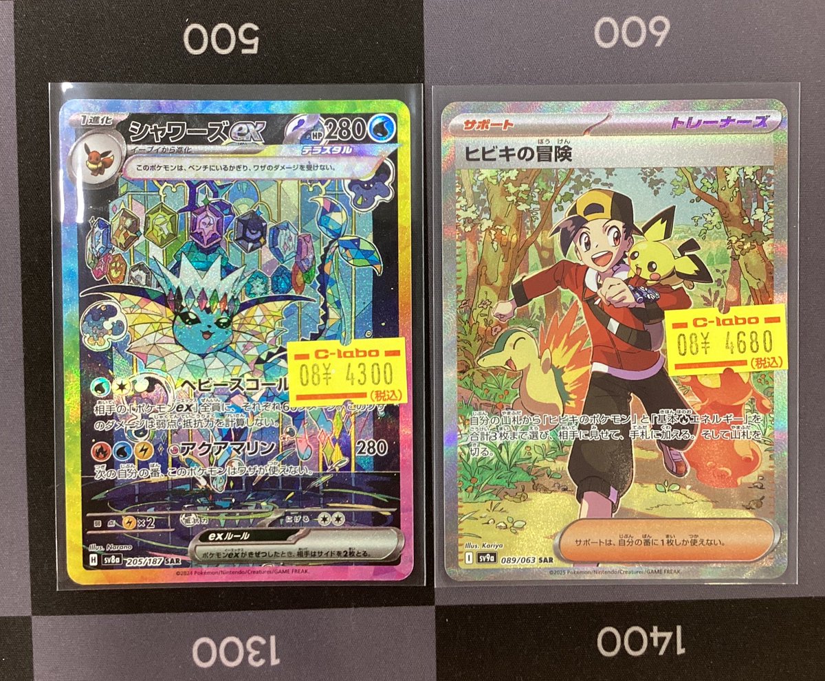 【ポケモンカード販売情報】 特価SAR入荷いたしました!! 💧シャワーズex SAR 🔥ヒビキの冒険 SAR⚡️ 状態確認お気軽にお声掛けください♪̊̈♪̆̈