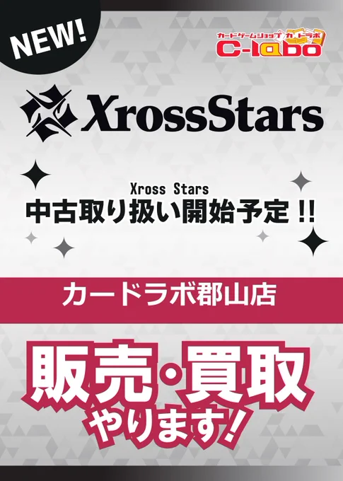 【カードラボ郡山店よりお知らせ】 ◇━━━━━━━━━━━━━━━━━━◇ カードラボ郡山店では 「Xross Stars」中古取扱を開始します❣❣ ◇━━━━━━━━━━━━━━━━━━◇ 新品の取り扱いもございますので、是非ご利用お待ちしております🔥 #クロスタTCG