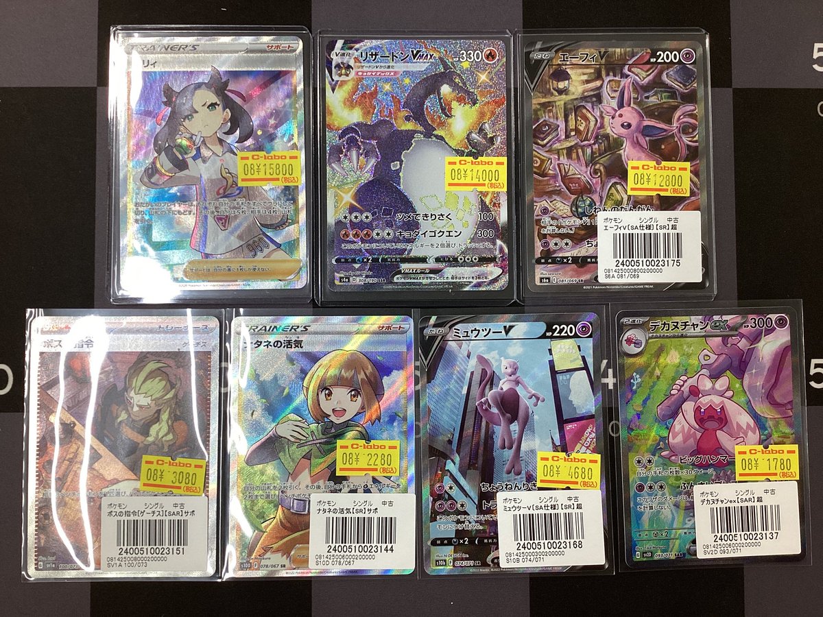 【ポケモンカード販売情報】 特価カード入荷しました!! 🩷マリィ SR 🔥リザードンVMAX SSR 🟣エーフィV SR …etc!!! 状態確認お気軽にお声掛けくださいませ♪̊̈♪̆̈ ご来店お待ちしております💛❤️