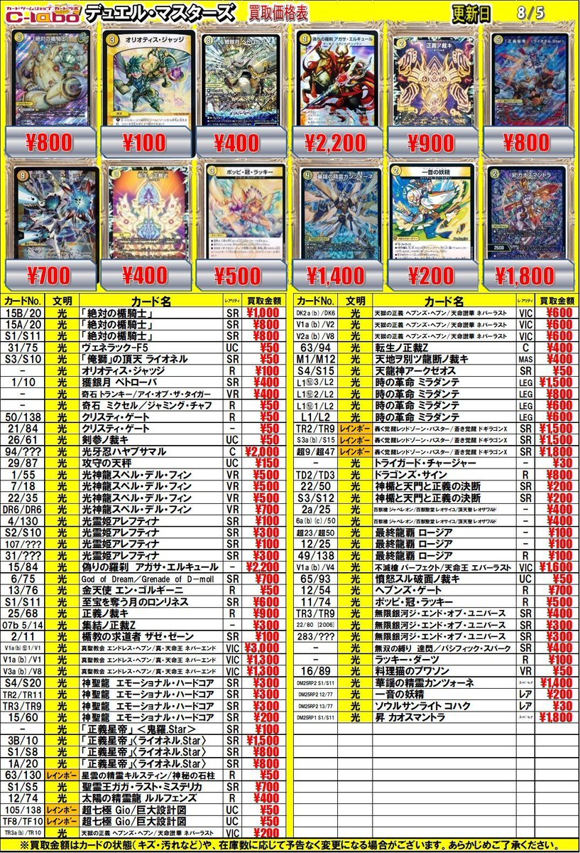 【デュエマ 買取情報】 最新弾シングル買取情報です!!! 超電磁トワイライトΣSR¥800 グレート・グラスパーSR¥400 理想と平和の決断SR¥600 暗黒凰ゼロ・フェニックスSR¥2,500 などなど 是非お持ち込みお待ちしております!!