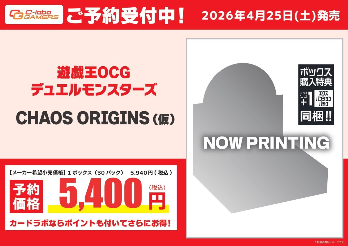【#遊戯王OCG 予約情報】 🔥🔥2026年4月25日発売予定🔥🔥 「CHAOS ORIGINS」 ご予約受付開始しました 是非カードラボ郡山店までご来店待ちしております✨