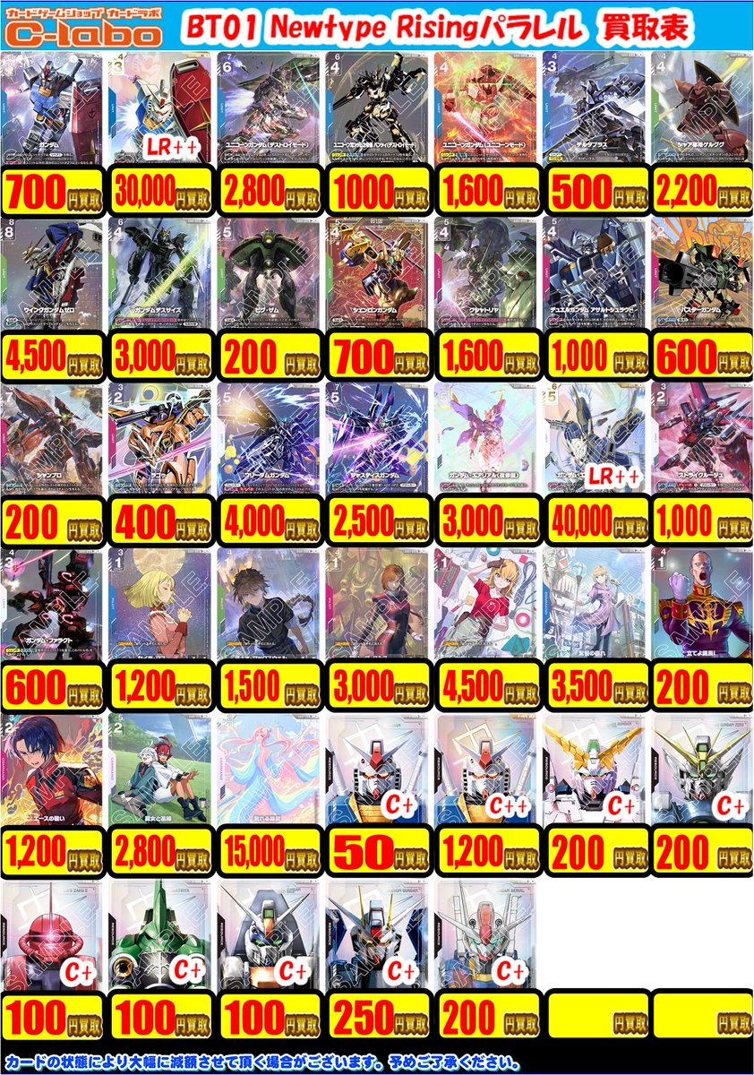 【ガンダムカードゲーム買取情報】 GCG買取表更新いたしました👀 買取表以外のカードも買取募集中です❗️ たくさんのお持ち込みお待ちしております☺
