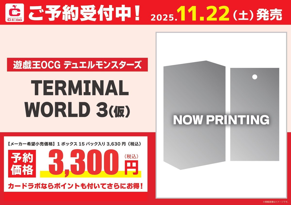 【遊戯王OCG 予約情報】 ♦︎•♣︎•━━━━ 11月22日(土) 発売 「TERMINAL WORLD 3(仮)」 ━━━━•♠︎•♥︎ 予約受付開始致しました!! カードラボで予約するとポイントも付いてさらにお得です🔥 是非ご来店お待ちしております🔥