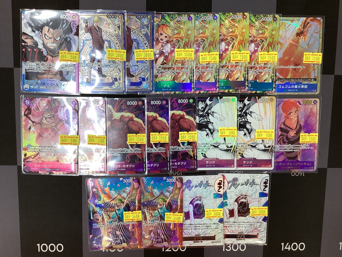 【ワンピースカード販売情報】 特価パラレル大量入荷いたしました‼️‼️ 🍽️サンジ SP 🍊ナミ SRパラレル 🍩カタクリ SR.パラレル 🐸ウソ八 SP …etc!!! お安くなっておりますのでぜひいかがでしょう🤩💡´- ご来店お待ちしております!!