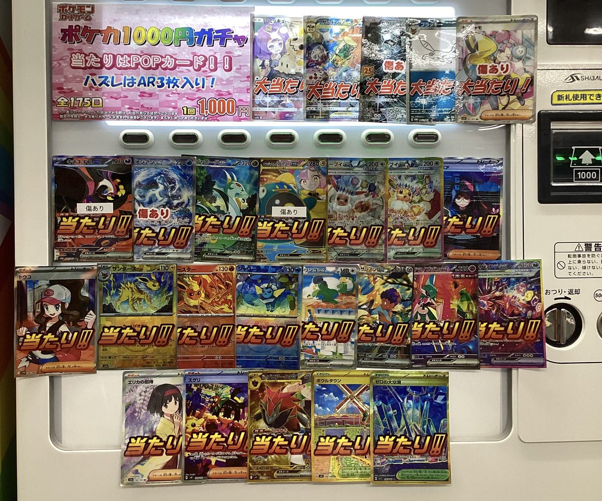 【ポケモンカード販売情報】 こちら⬇️の💫ポケカ1000円ガチャ💫を展開しました😙💗 全175口で、当たりカードは画像の通りになります🥺 この機会にぜひチャレンジ✨✨してみてください💕 カードラボ郡山店でお待ちしております🕺🕺🫧