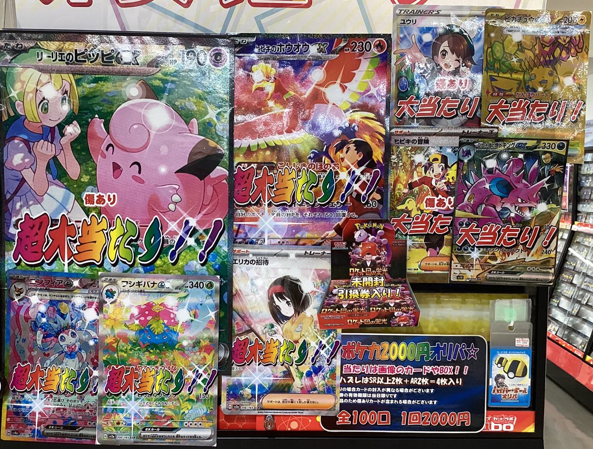 【ポケモンカード オリパ販売情報】 ポケモンカード2000円オリパ好評発売中です✨️ 大当たりにはリーリエのピッピex 他にはヒビキのホウオウexやロケット団の栄光の未開封BOXなど✨️ 運試しにお1ついかがでしょうか? 皆様のご来店お待ちしております🌻