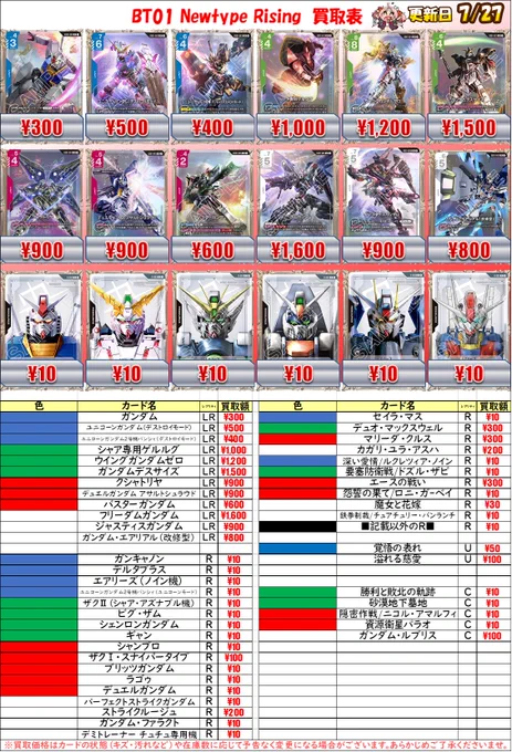 【ガンダムカードゲーム 買取情報】 ガンダムカードゲーム買取表更新いたしました!! 是非お持ち込みお待ちしております! ※在庫状況やカードの状態で金額が変動する場合がございます。あらかじめご了承くださいませ