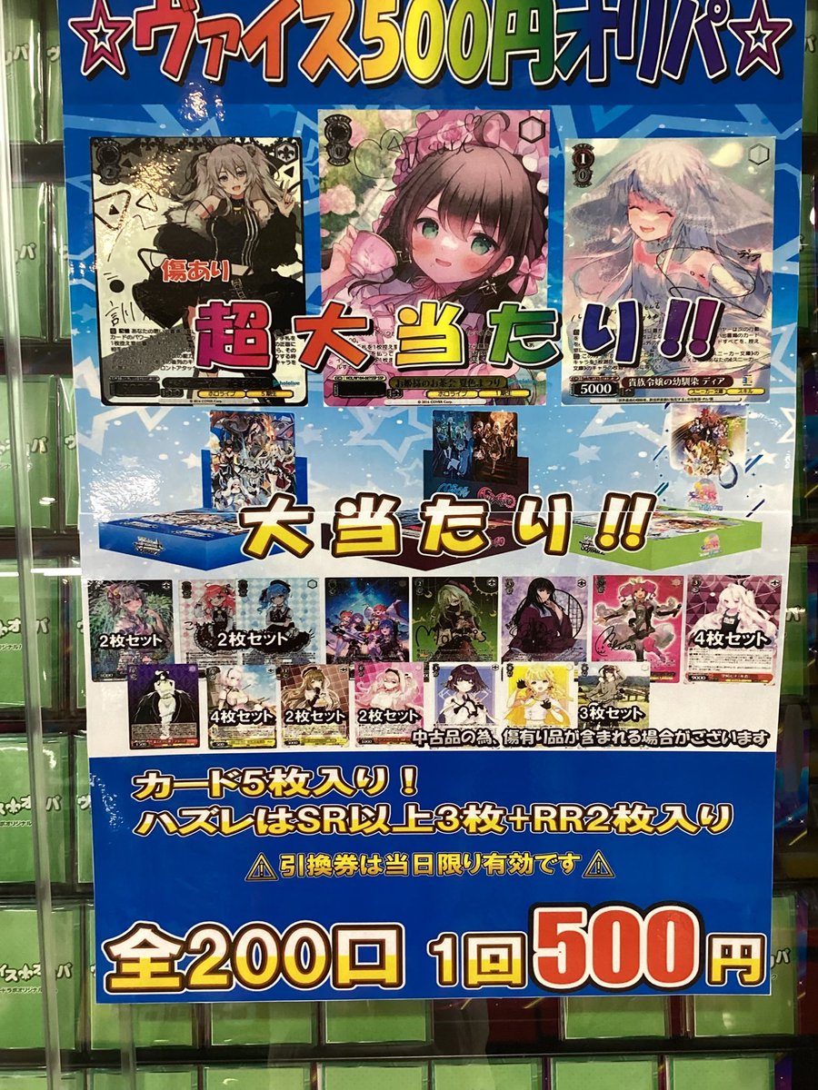 【オリパ 販売情報】 ヴァイスシュヴァルツオリパ好評配信中です🩵 🌟ヴァイス1000円オリパ🌟 大当たりは『ロボ子さん』 他にも画像のカードやBOXが当たります! ご来店お待ちしております✨ 引換券は当日限り有効です
