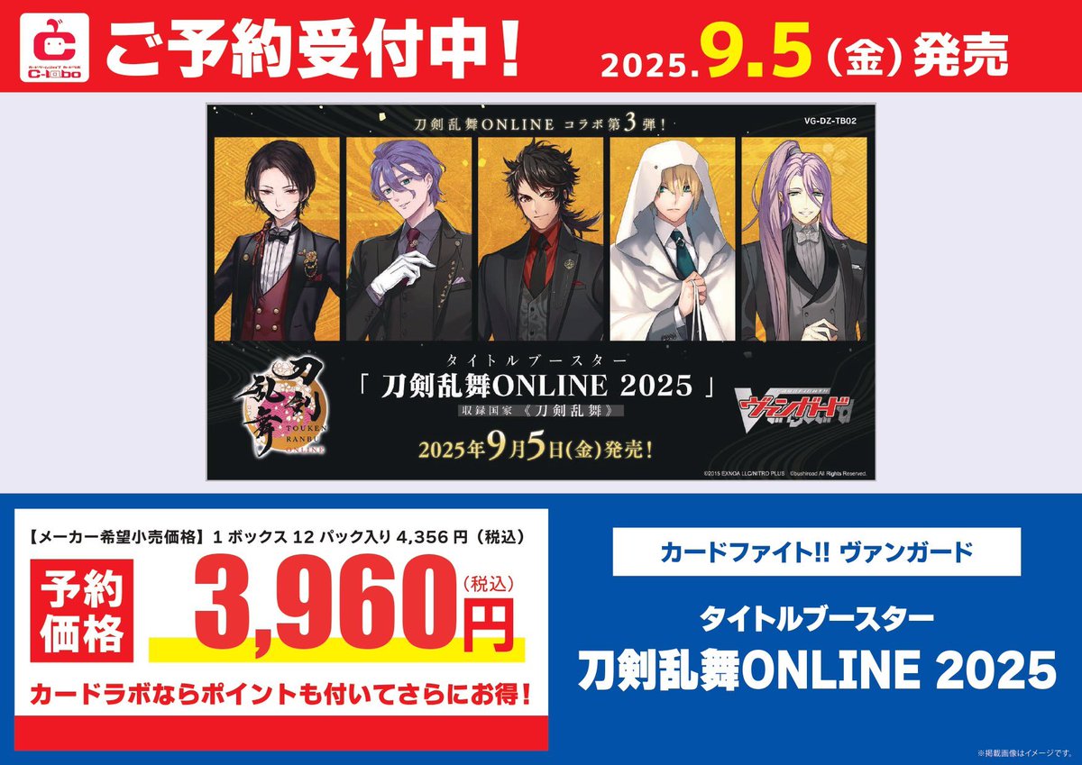 【ヴァンガード 予約情報】 カードラボ郡山店ではこちら予約受付中です🔥 💎ブースターパック『竜魂鳴導』 💎タイトルブースター 刀剣乱舞ONLINE 2025 💎ブースターパック 『武奏烈華』 是非ご来店お待ちしております♪