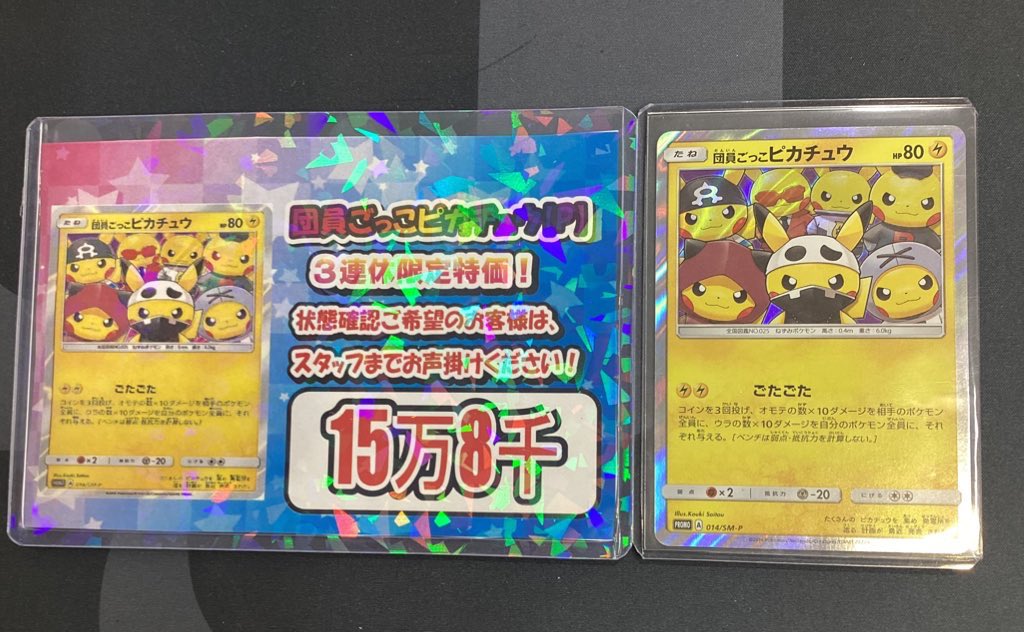 【ポケモンカード 販売情報】 団員ごっこピカチュウ 限定特価でショーケースに展開中です♪ 状態確認の際はスタッフまでお声掛けくださいませ