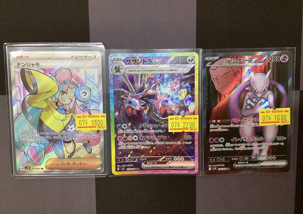 【ポケモンカード販売情報】 特価入荷品のご案内です!! 🩷ナンジャモ SR💛 ⚫️サザンドラex SAR 🟣ミュウツーex SR お安くなっておりますのでぜひ!!