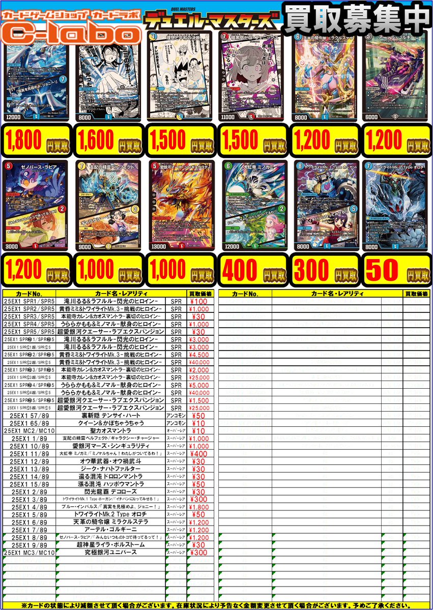 【デュエマ 買取情報】 DM25-EX1 愛感謝祭 ヒロインBEST 買取POPになります! 11時から買取受付開始です!! 是非お持ち込みお待ちしております!
