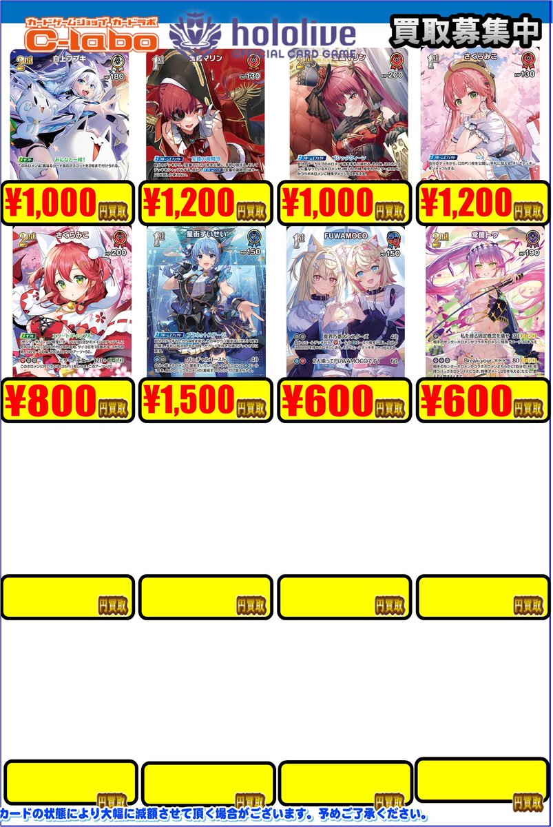【ホロカ 買取情報】 ホロカ買取表更新いたしました! 是非お持ち込みお待ちしております♫