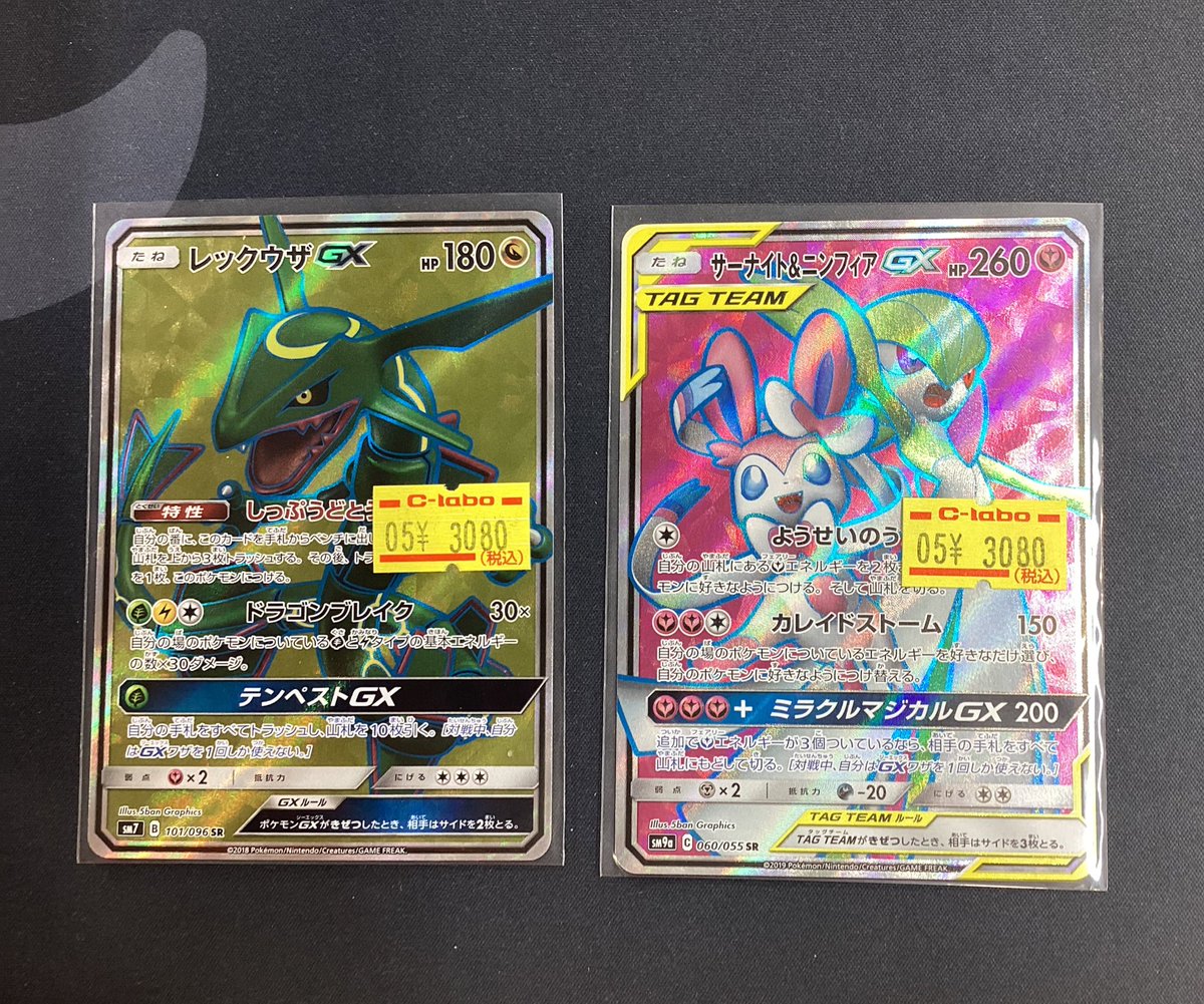 【ポケモンカード 販売情報】 レックウザgx SR サーナイト&ニンフィアGX SR ショーケースにて展開中です♪♪ ご来店お待ちしております🔥