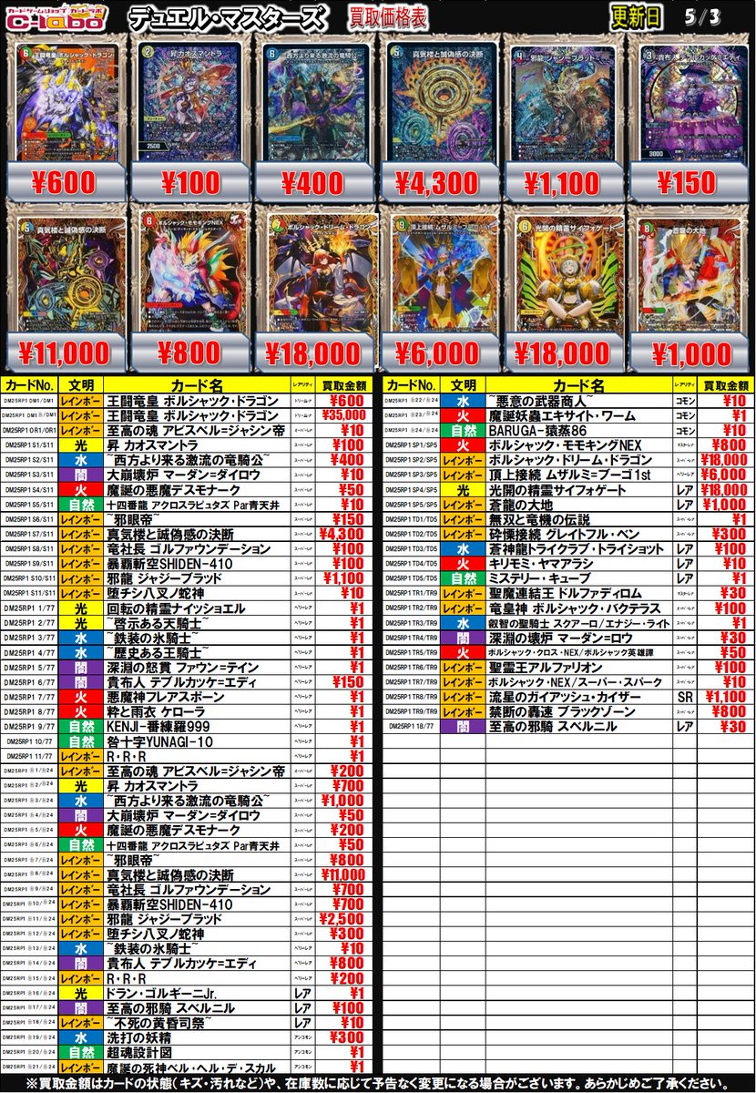 【デュエマ 買取情報】 汎用パーツ大募集中です! 神アートの買取表も掲載中ですので ぜひお持ち込みお待ちしております
