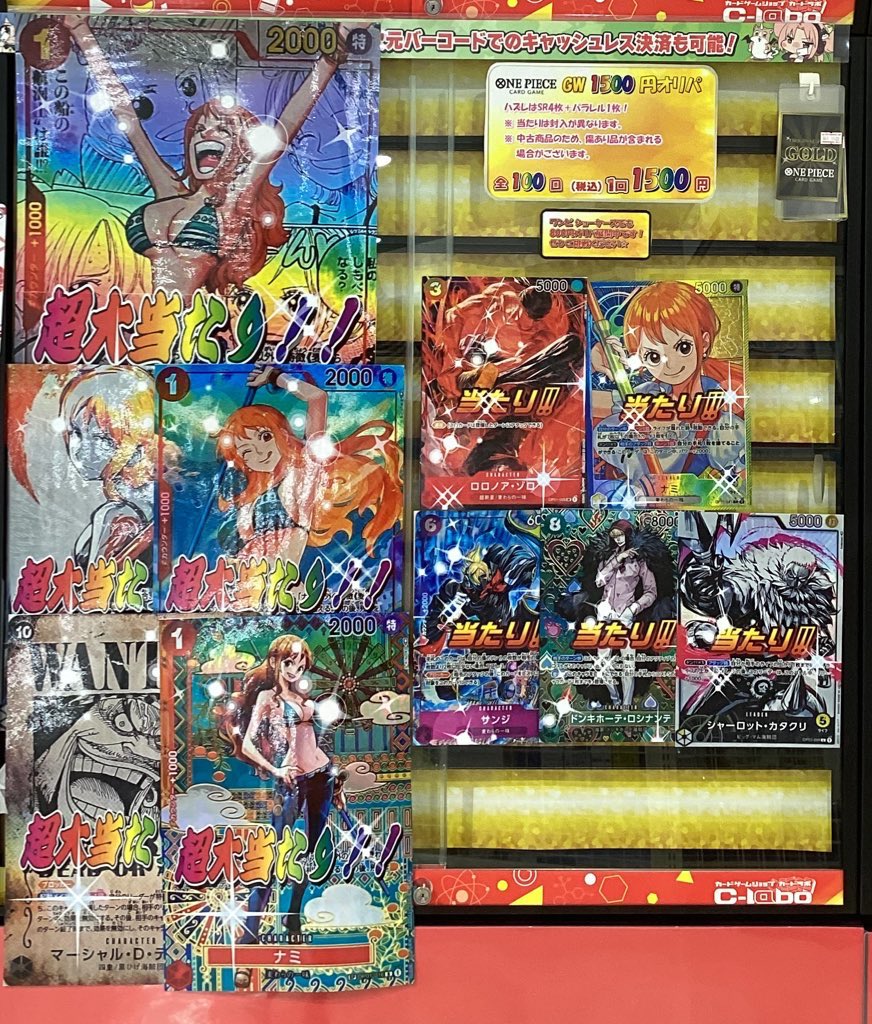【ワンピースカード販売情報】 GWオリパ展開中です🔥 コミパラナミやウソ八SPなど当たりにございます🎯 是非カードラボ郡山店までお買い求めください💚