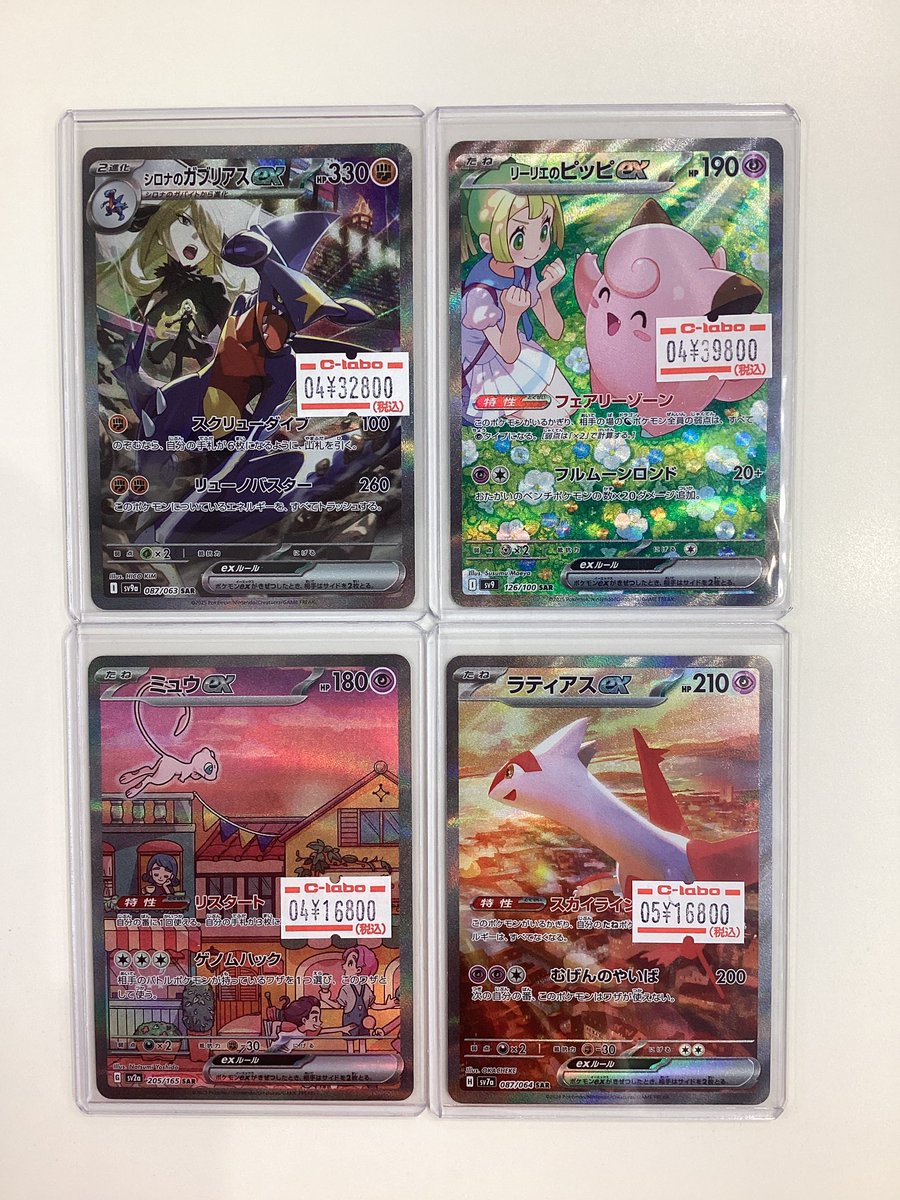 【ポケモンカード販売情報】 シロナのガブリアスex SAR リーリエのピッピex SAR ミュウex SAR ラティアスex SAR …こちら販売中です!!! デッキのレアリティ上げやコレクションにいかがでしょう😊 お客様のご来店お待ちしております️🩵️🩵