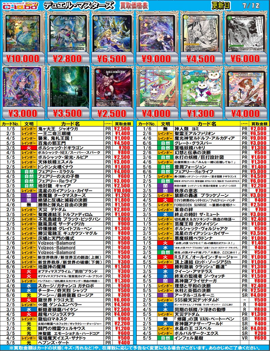 【デュエマ買取情報】 神アートの買取POP更新しました💡 🔥水晶の王 ゴスペル¥4000 🔥聖霊王 アルファリオン¥6500 などなど… お客様のお持ち込みお待ちしております!