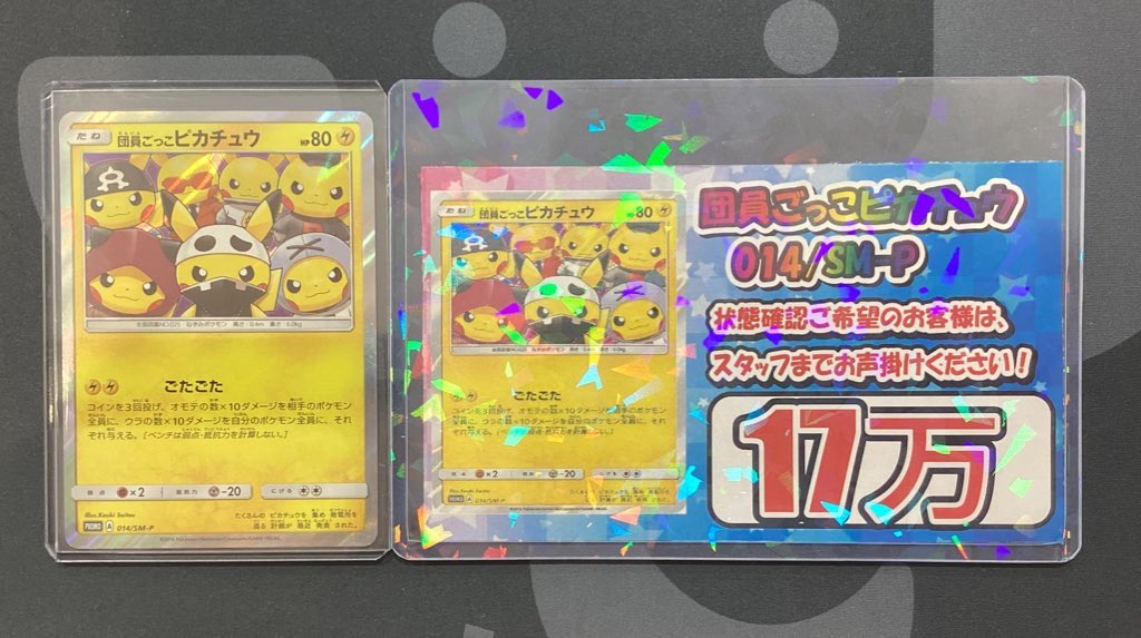 【ポケカ販売情報】 💡団員ごっこピカチュウ 014/SM-P💡 ショーケース展開中です⚡️⚡️⚡️ コレクションに是非いかがでしょうか(((o(*゚▽゚*)o))) ご来店お待ちしております✨️