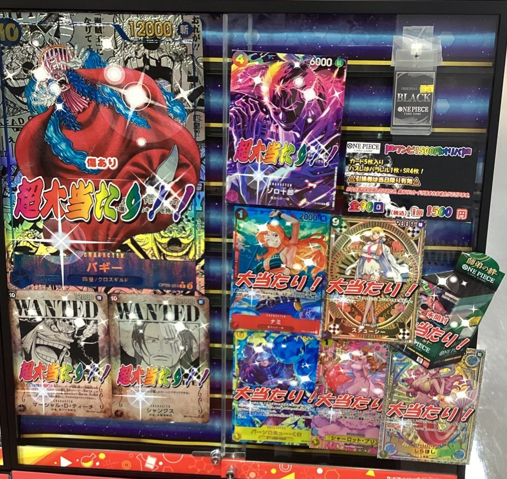 【ワンピースカード 販売情報】 ワンピ1500円オリパ展開中です🔥 全90口、大当たりはコミパラバギー‼️ 他にもゾロ十郎SP、未開封BOXなどございます♪ 運試しにおひとついかがでしょうか⁉️ ぜひカードラボ郡山店までお買い求めください💙