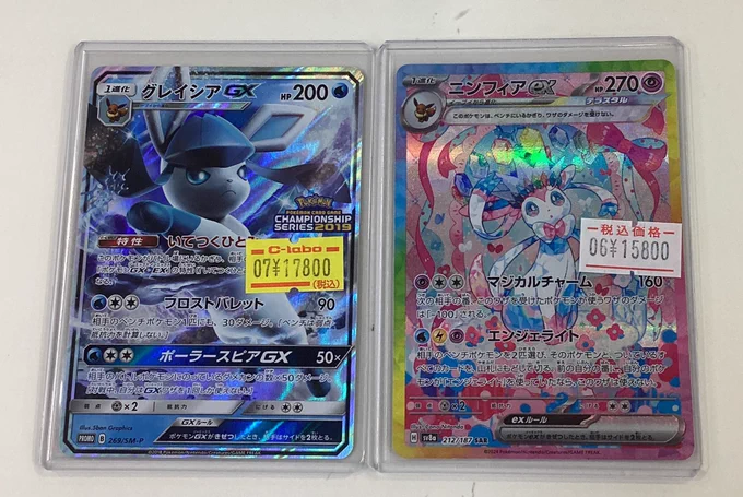 【ポケモンカード 販売情報】 ・グレイシアGX ・ニンフィアex SAR 販売中です💡⠜ 状態確認の際はお気軽にスタッフまでお声掛けくださいませ🍀 ご来店お待ちしております✨️