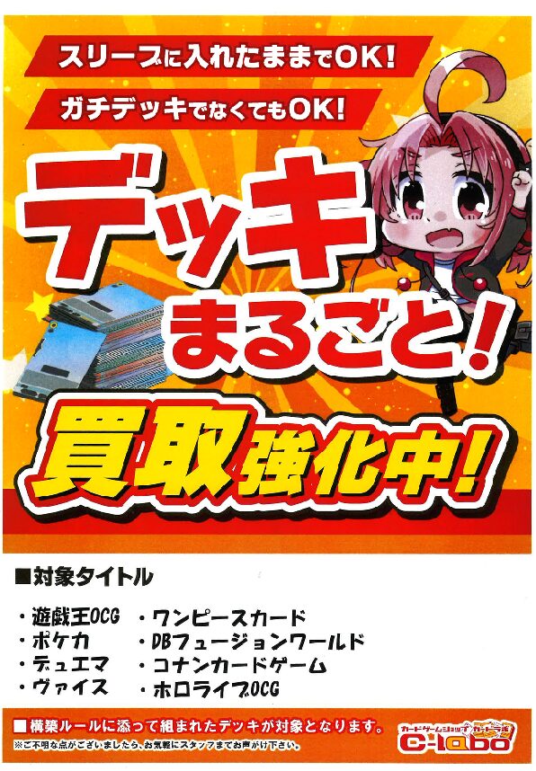 カードラボ郡山店ではデッキ買取も行っております! 是非お持ち込みお待ちしております♪