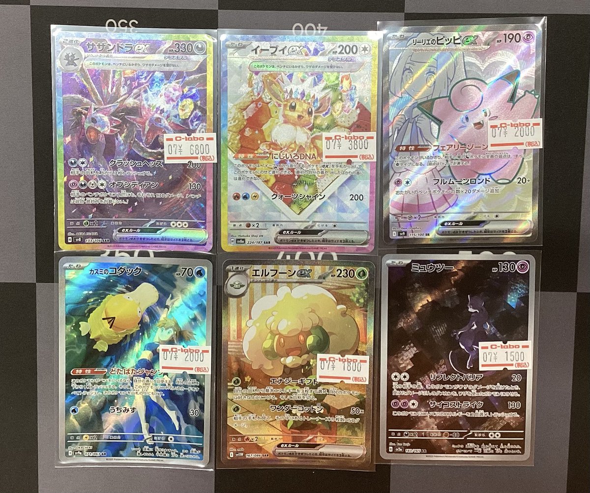 【ポケモンカード販売情報】 ✨サザンドラ ex✨️ 💕イーブイex💕 ✨️リーリエのピッピ SR✨️ 💧カスミのコダック AR💧 🍃エルフーン ex🍃 ✨️ミュウツー AR✨️ 新しく入荷しました🫶🏻💗 お求めのお客様はカードラボ郡山店でお待ちしております🥰