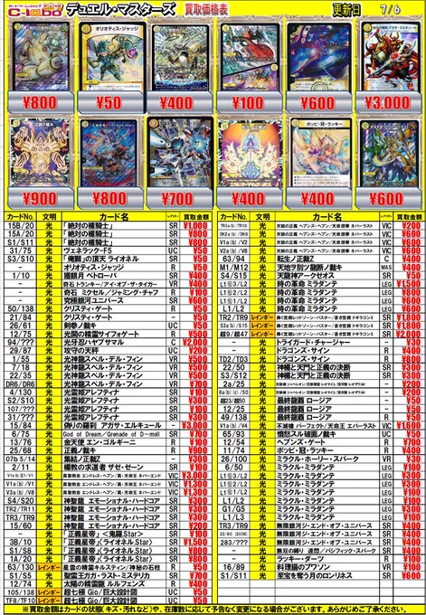【デュエマ 買取情報】 光文明の買取表を更新いたしました!! 🔥究極銀河 ユニバース¥600 🔥「絶対の楯騎士」 ¥800 などなど… お客様のお持ち込みお待ちしております!