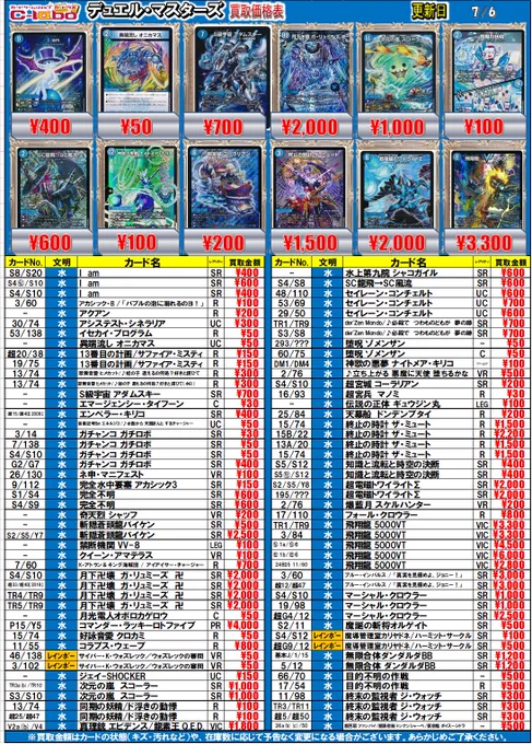 【デュエマ 買取情報】 水文明の買取表を更新いたしました❗️❗️ 🔥I am ¥400 🔥次元の嵐 スコーラー¥1000 などなど… お客様のお持ち込みお待ちしております‼️