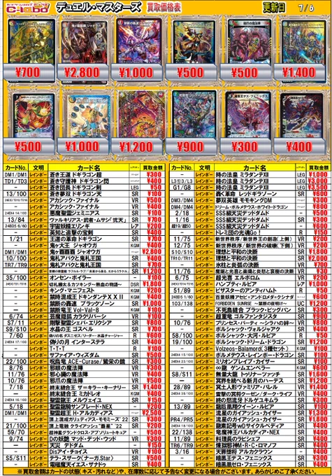 【デュエマ 買取情報】 多色の買取表を更新いたしました❗️❗️ 🔥鬼ヶ覇覇覇 ジャオウガ¥2800 🔥暗黒凰ゼロ・フェニックス¥400 🔥暗黒王デス・フェニックス¥300 などなど… お客様のお持ち込みお待ちしております❗️❗️