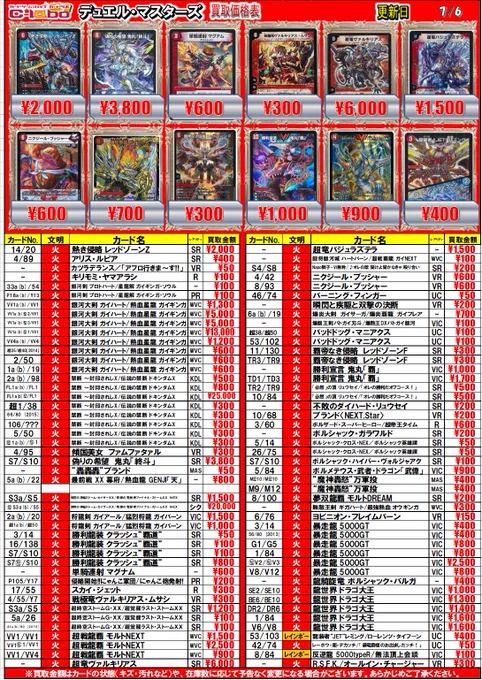 【デュエマ 買取情報】 火文明の買取表を更新いたしました❗️❗️ 🔥偽りの希望 鬼丸「終斗」¥3800 🔥単騎連射 マグナム¥600 などなど… お客様のお持ち込みお待ちしております❗️❗️