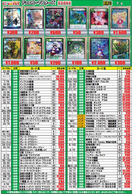 【デュエマ 買取情報】 自然文明の買取表を更新いたしました❗️❗️ 🔥S級侵略 サンマッド¥600 🔥完璧妖精サエポヨX ¥300 などなど… お客様のお持ち込みお待ちしております❗️❗️
