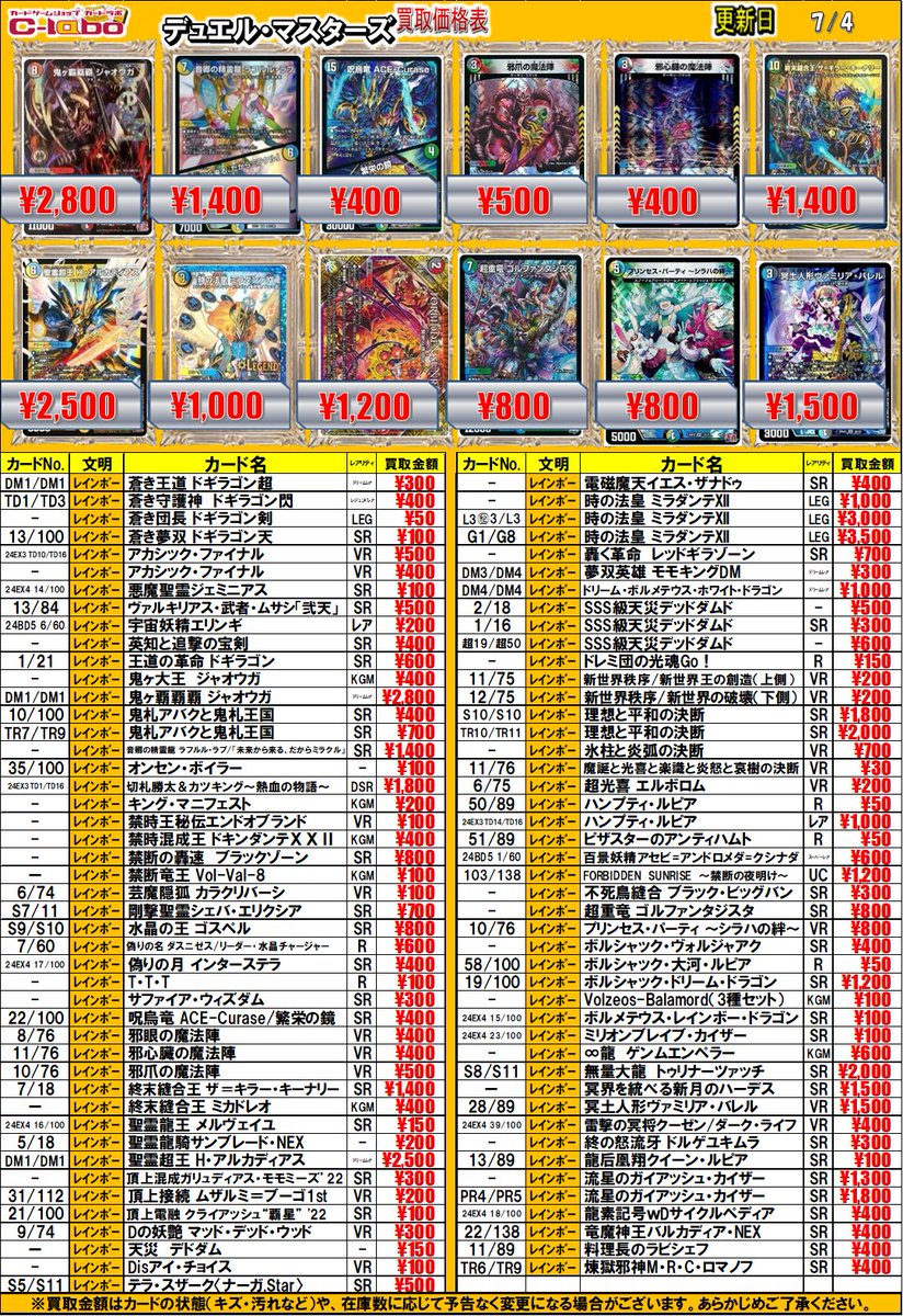【デュエマ 買取情報】 汎用系買取表更新いたしました! ☘️完璧妖精サエポヨX¥400 ☘️完璧妖精マリニャンX¥200 👹鬼ヶ覇覇覇 ジャオウガ¥2,800 🐲ドリーム・ボルメテウス・ホワイト・ドラゴン¥1,000 などなど 是非ご来店お待ちしております!!