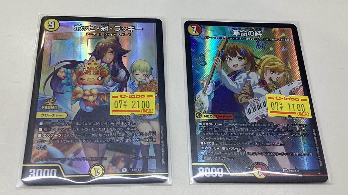 【デュエルマスターズ 販売情報】 デュエマのシングルカードで「ポッピ・冠・ラッキー」と「革命の絆」のプロモを特価ショーケースにて販売です❗️❗️ たくさんございますので、ぜひカードラボ郡山店までお越しください🚗💨✨🙇♂️