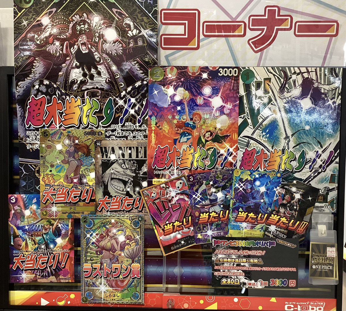 【ワンピースカード販売情報】 ワンピ3000円オリパ、展開中です‼️ ✨全80口 ✨ ハズレでもパラレル4枚+SR4枚🔥 超大当たりは マーシャル・D・ティーチ 金箔SP🏴☠️ 他にも最新弾のカードやBOX、SPなど🤩🤩 運試しにいかがでしょうか⁉️
