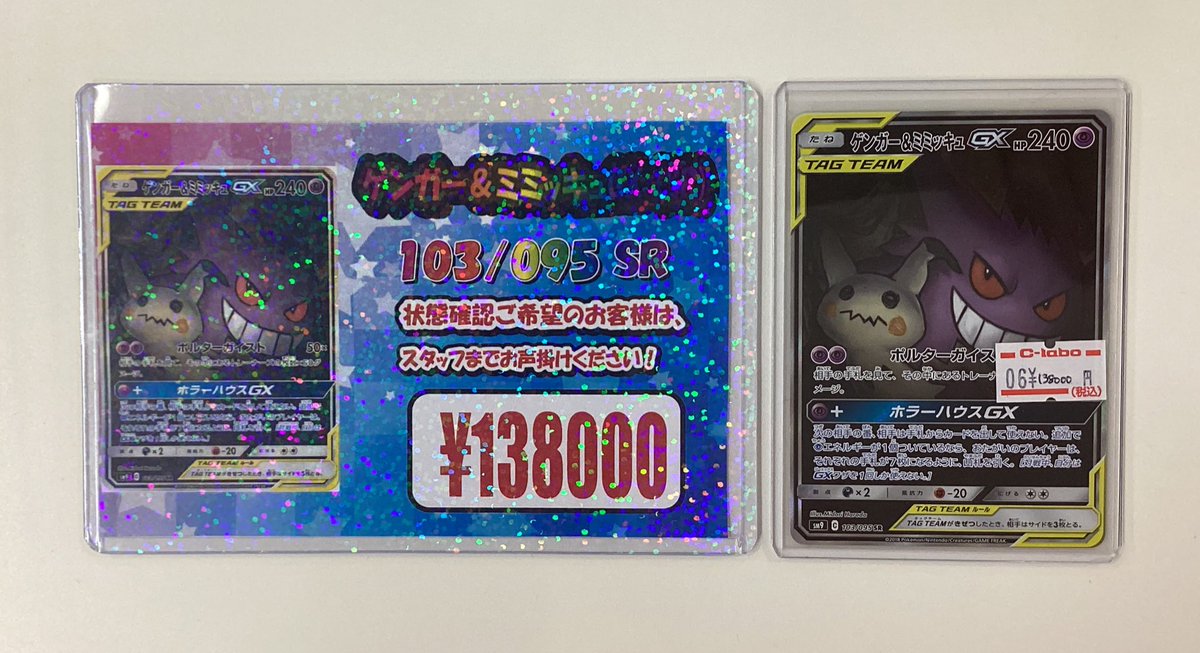 【ポケカ販売情報】 『ゲンガー&ミミッキュGX』SA👻 ショーケース展開中です✨✨✨ 人気ポケモンゲンガーとミミッキュのコラボレーション💘 手に入れないと貴方のお家でポルターガイストが起きるかも…😱 この機会に是非GETしてみてはいかがでしょうか🤩 ご来店お待ちしております🙌