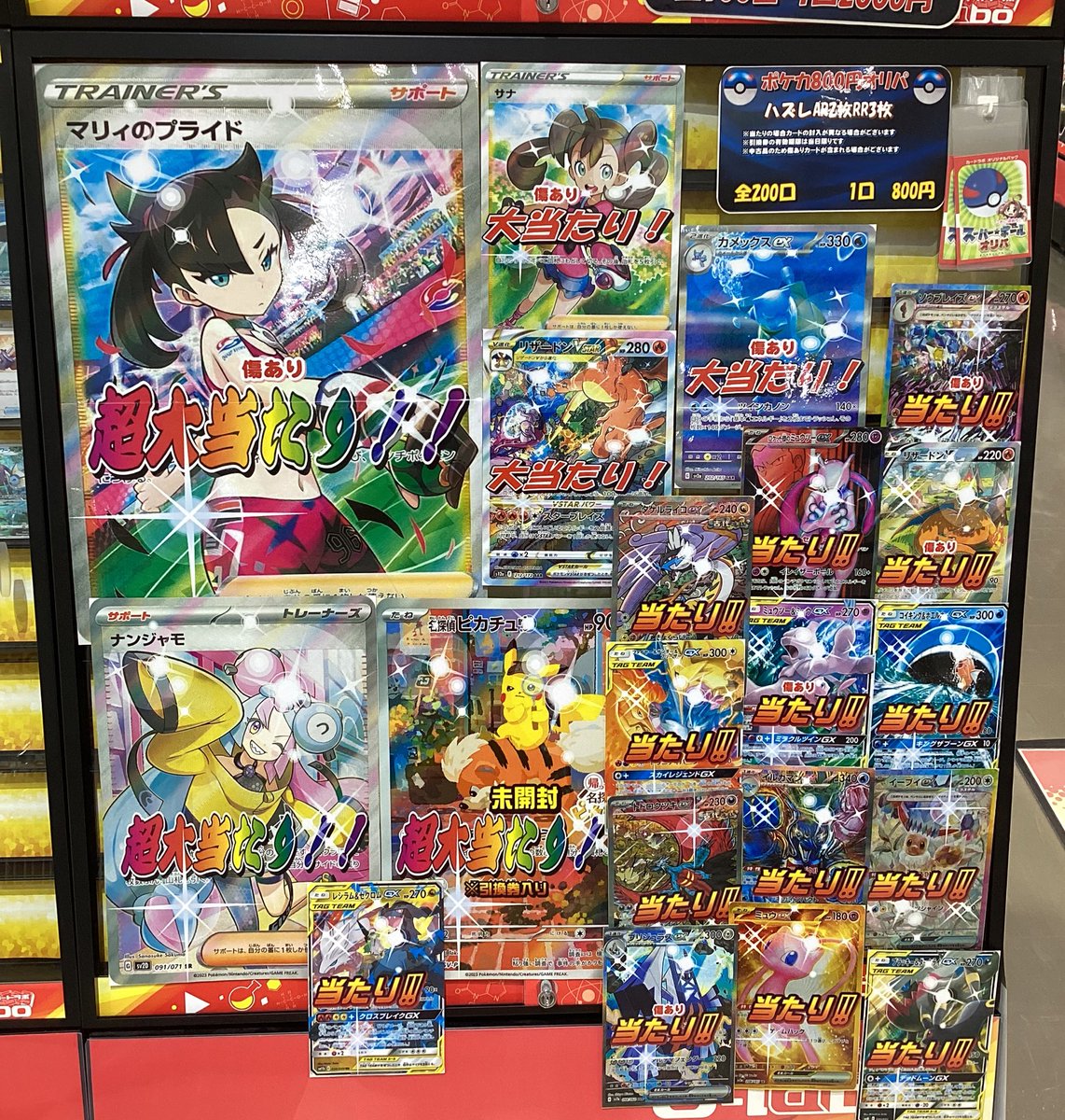 【ポケモンカード 販売情報】 8️⃣0️⃣0️⃣円オリパ好評販売中です🔥 大当たりは🎯マリィのプライド🎯サナ🎯ナンジャモ🎯カメックスex SAR🎯 などなど他にも当たりがございます🔥 是非ご来店お待ちしております♪