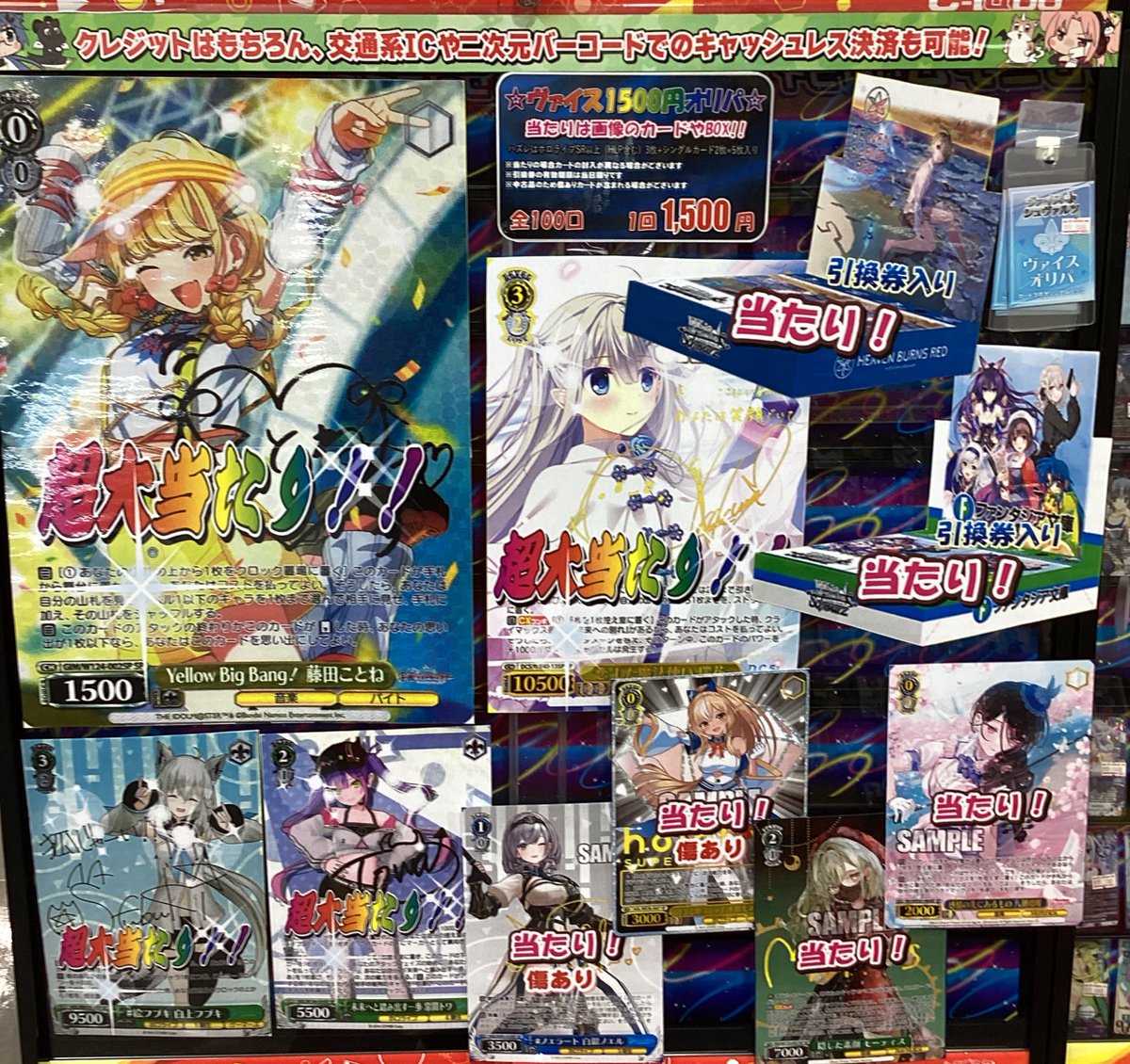 【WS 販売情報】 WS1500円オリパ販売中です🔥🔥 大当たりは Yellow Big Bang! 藤田ことね(サイン)🌟絵フブキ 白上フブキ(サイン)🌟 などなど‼️ 是非ご来店お待ちしております🔥🔥