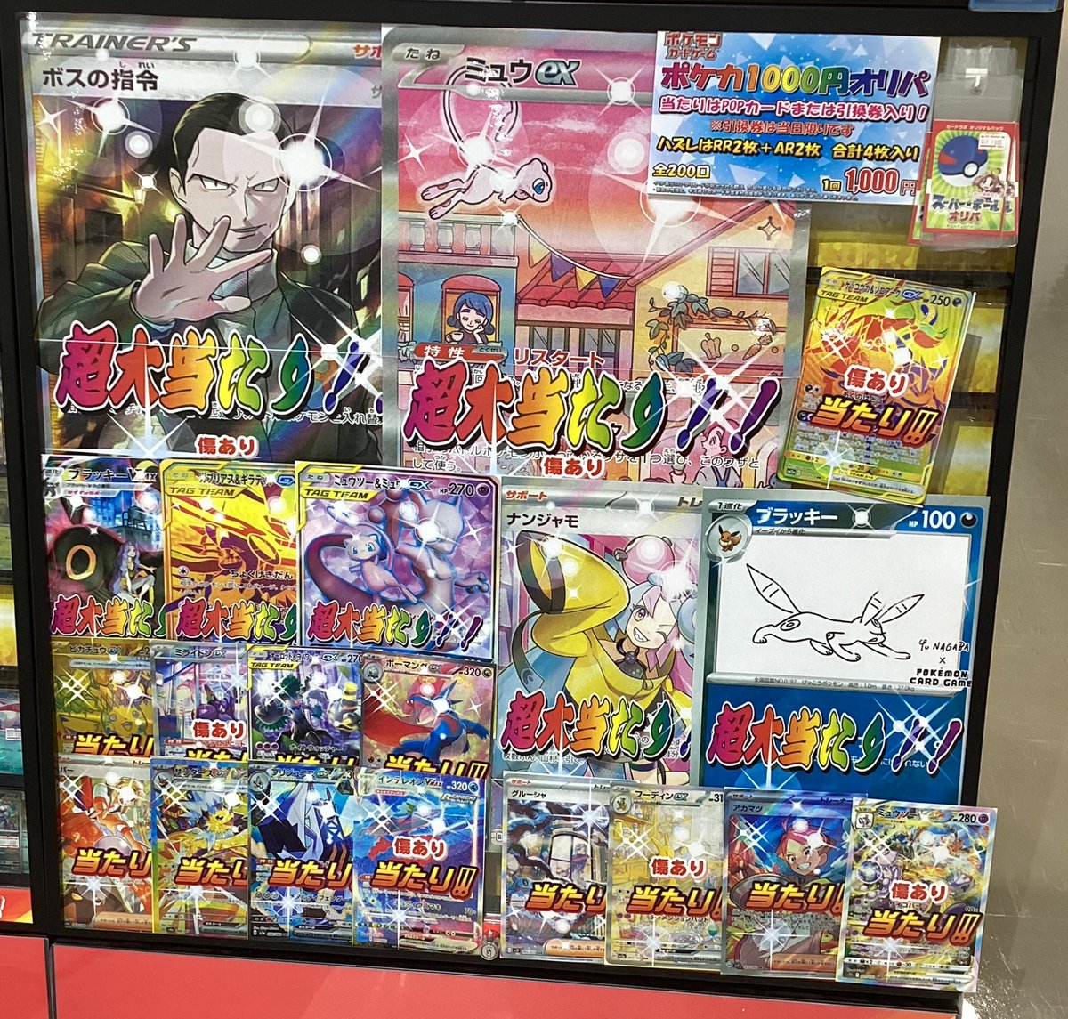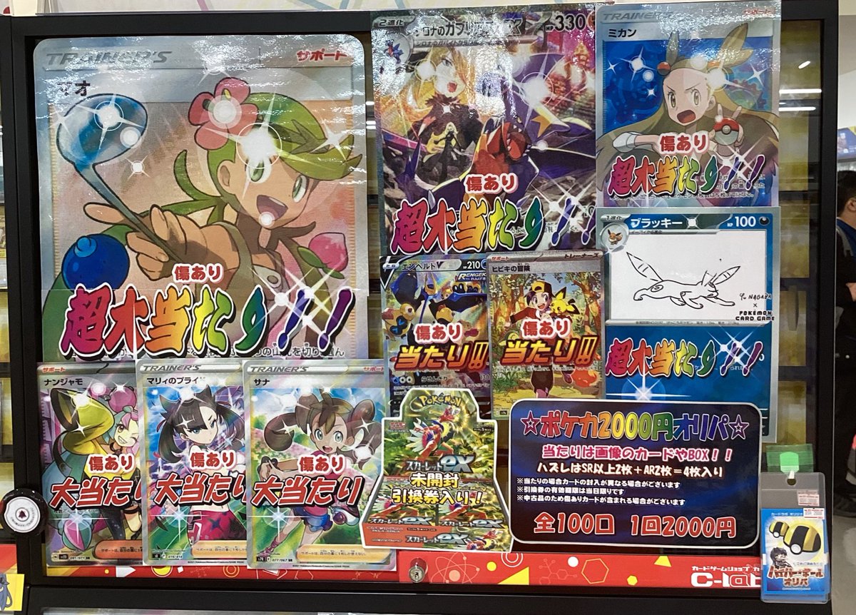 【オリパ 販売情報】 ⭐️ポケカ2000円オリパ⭐️ 新しく展開いたしました!! 今回の大当たりは…マオです🎉 他にも画像のカードやBOXが当たります!! 是非当店までお越しください🚗💨