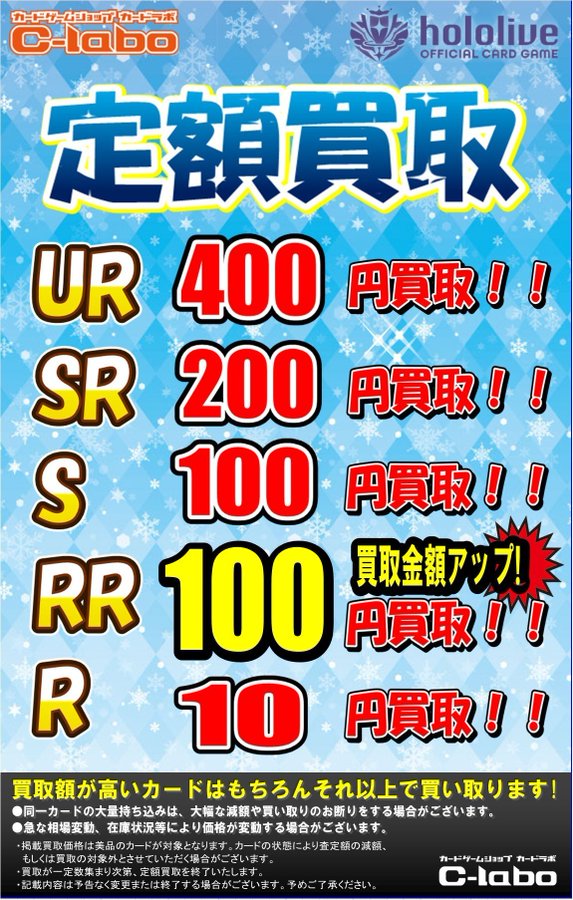 【ホロカ 買取情報】 定額買取大大募集中✨ UR 定額400円買取 SR 定額200円買取 S 定額100円買取 RR 定額100円買取 R 定額10円買取 お持ち込みお待ちしております!