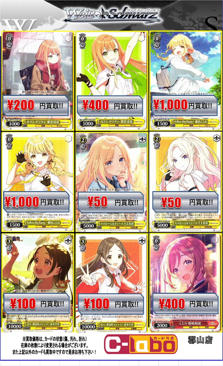 【ヴァイス 買取情報】 最新弾『学園アイドルマスター』 買取表です!! お持ち込みお待ちしております✨️