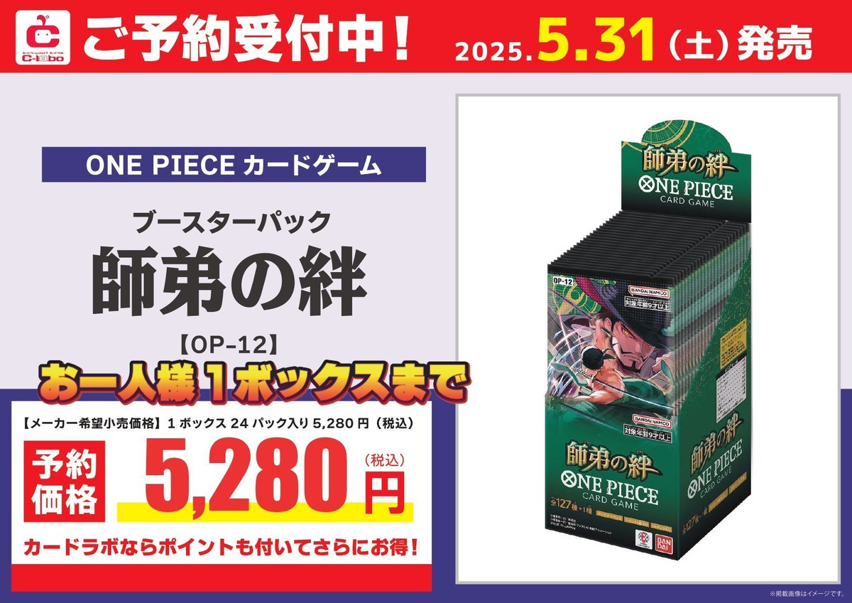 【ワンピースカード 予約情報】 ブースターパック 「師弟の絆」 予約受付中‼️ ※お一人様1BOXまで ご予約希望のお客様は注意事項をご確認の上 是非カードラボ郡山店までお越しください