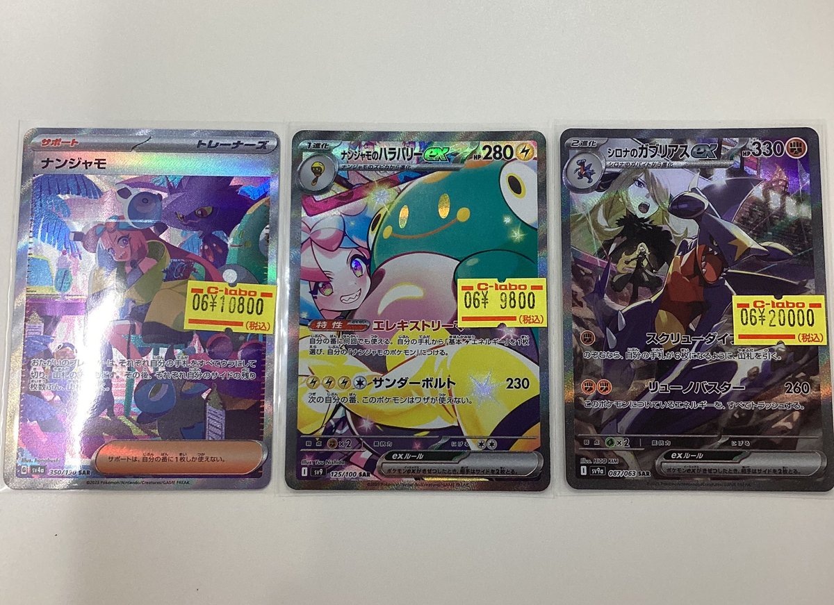 【ポケモンカード販売情報】 🩷ナンジャモ SAR ⚡️ナンジャモのハラバリーex SAR 🦈シロナのガブリアスex SAR 入荷いたしました!!! 特価での販売です💡⠜ 状態確認お気軽にお声掛けくださいませ♪̊̈♪̆̈