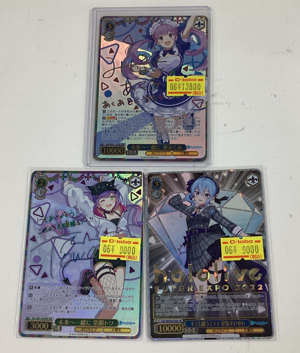 【ヴァイスシュヴァルツ 販売情報】 💙キミと願うミライ 星街すいせい SP💙 💜未来へ一緒に 常闇トワ SSP💜 🩵未来へ一緒に 湊あくあ SPP🩵 全て特価で入荷いたしました!! ご来店お待ちしております✨️