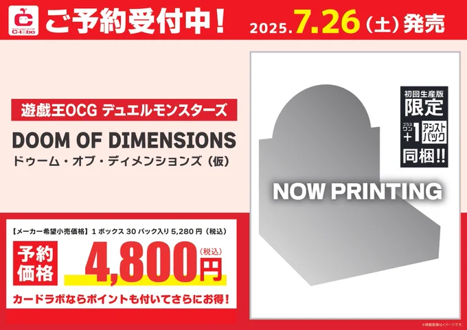 【遊戯王予約情報】 7月26日発売 遊戯王OCG 『DOOM OF DIMENSIONS』 ご予約受付中です ご予約はぜひカードラボ郡山店まで!!
