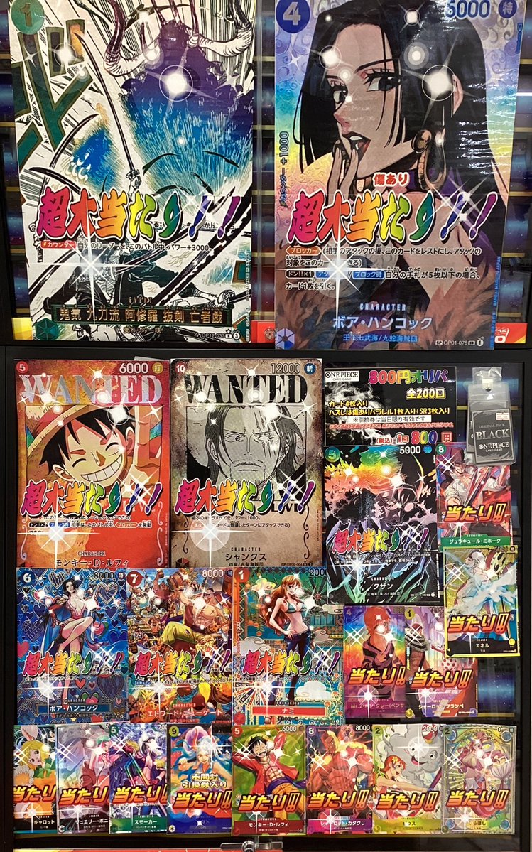 【ワンピースカード販売情報】 8️⃣0️⃣0️⃣円オリパ、5⃣0️⃣0️⃣円ガチャ 展開中です!! オリパには亡者戯やハンコック・手配書ルフィなど、 SPカード多数入れております🤩✨️ ガチャにはウソ八SPや緑ゾロリーパラなど⚔️🔥🔥 運試しにぜひご挑戦ください〜٩( Ü)و💡⠜