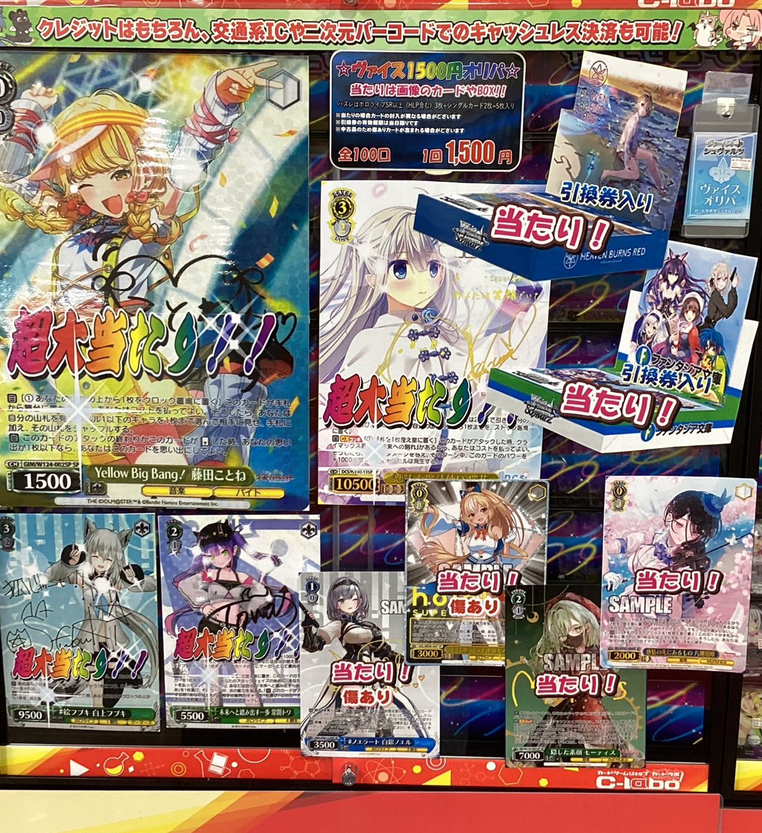 【ヴァイス 販売情報】 🌟ヴァイス1500円オリパ🌟 新しく展開しました!! 大当たりは 『Yellow Big Bang! 藤田ことね SP』✨ 他にも画像のカードやBOXが当たります!!! 是非当店までお越しください🚗💨