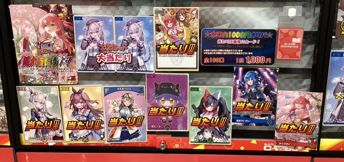 【オリパ 販売情報】 🌟ホロカ1000円オリパ🌟 新しく展開しました!! 今回の大当たりは…… 『さくらみこ OUR』🌸 他にも画像のカードが当たります!! ご来店お待ちしております✨