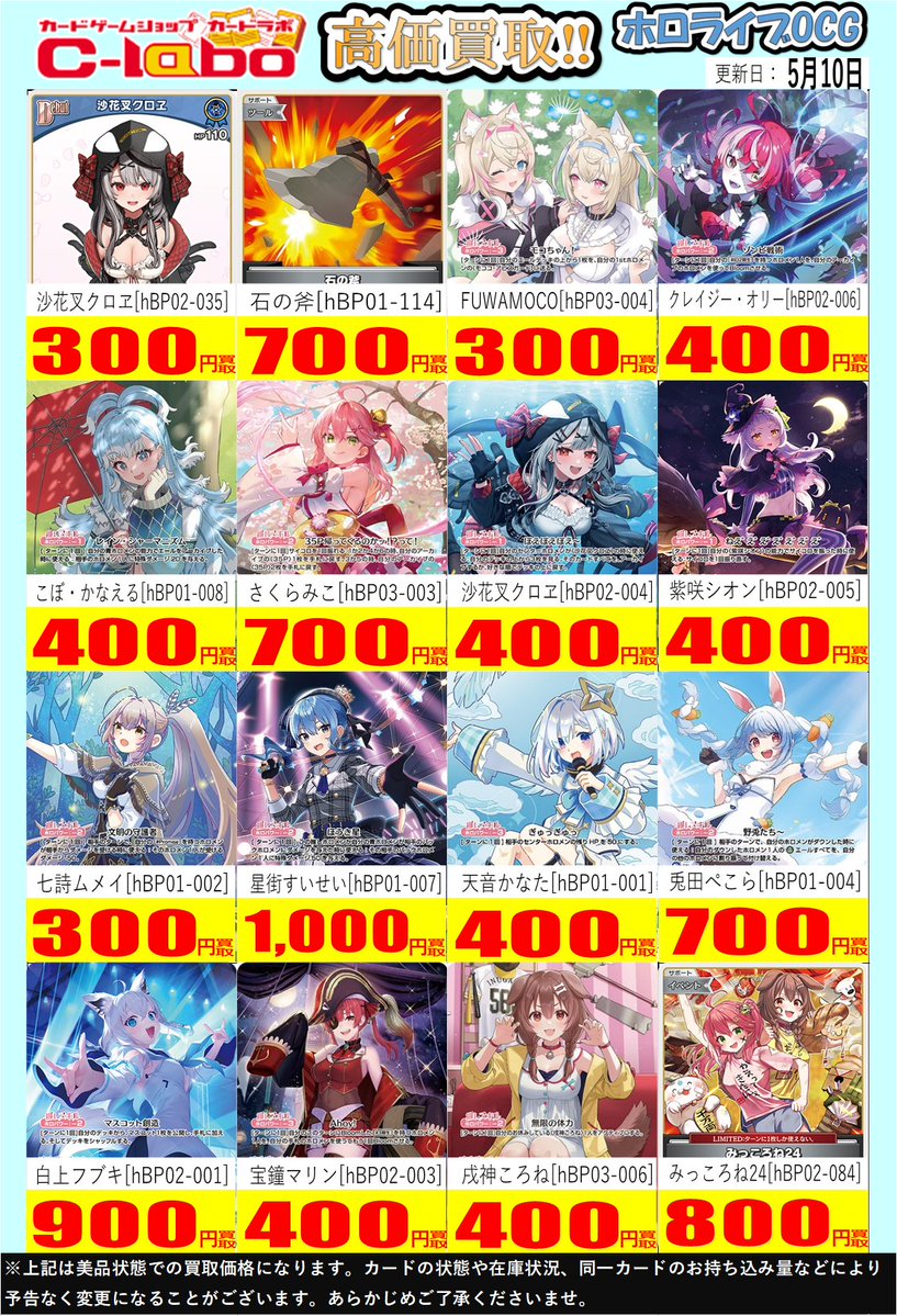 【ホロカ買取情報】 買取表更新しました‼️ お持ち込みお待ちしております‼️